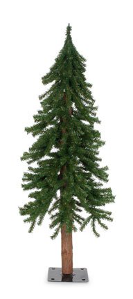 6 foot Artificial Alpine Skinny Christmas Tree with natural wood trunk.