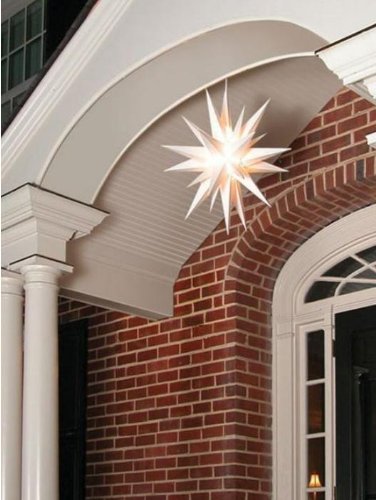 For hundreds of years, people have prepared for Christmas by displaying an Advent Star, representing the Star of Bethlehem. Here's how you can do that now. 3-D star lighting fixture assembles easily in minutes to hang over a porch or front door. Includes pre-wired electrical fixture and 25w incandescent bulb. Molded plastic is UV-treated to prevent yellowing over time. 24" cord. 21" in diameter. UL listed for outdoors.